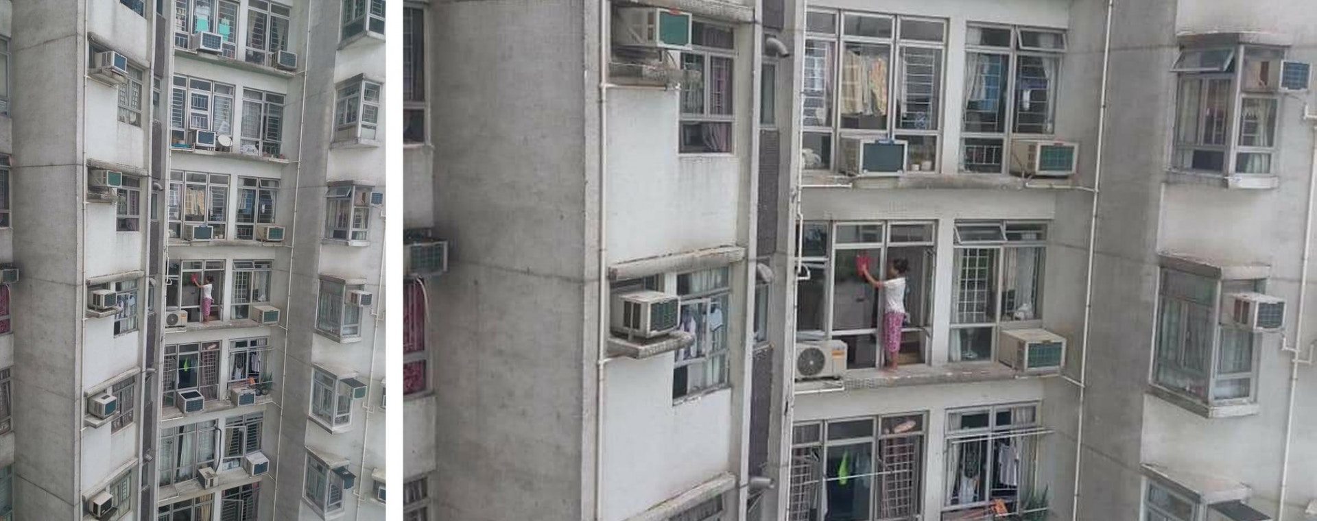 Photos of a maid standing on the ledge of a high-rise apartment in Hong Kong and cleaning a window have gone viral on social media.