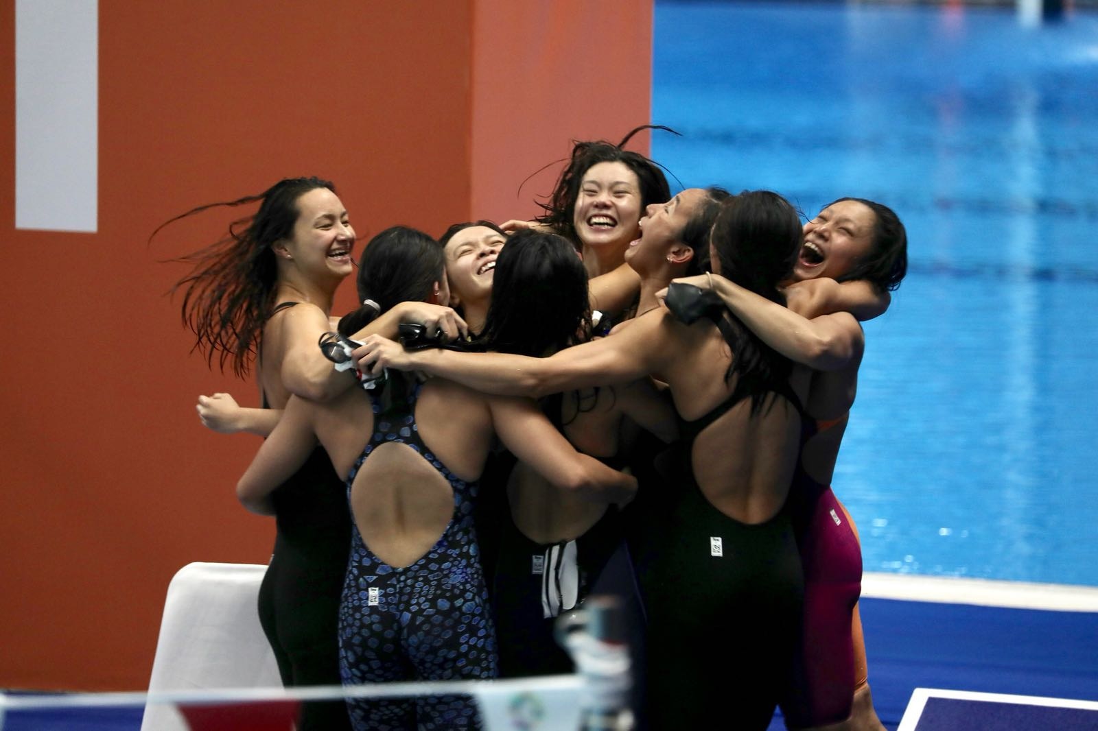Singapore also picked up a medal for third place in the medley relay, prompting the two teams to celebrate with a collective hug. But while it may have cheered Hong Kong supporters, this did not go down very well with internet users on the mainland, who said they should have been hugging the disqualified team from China instead.