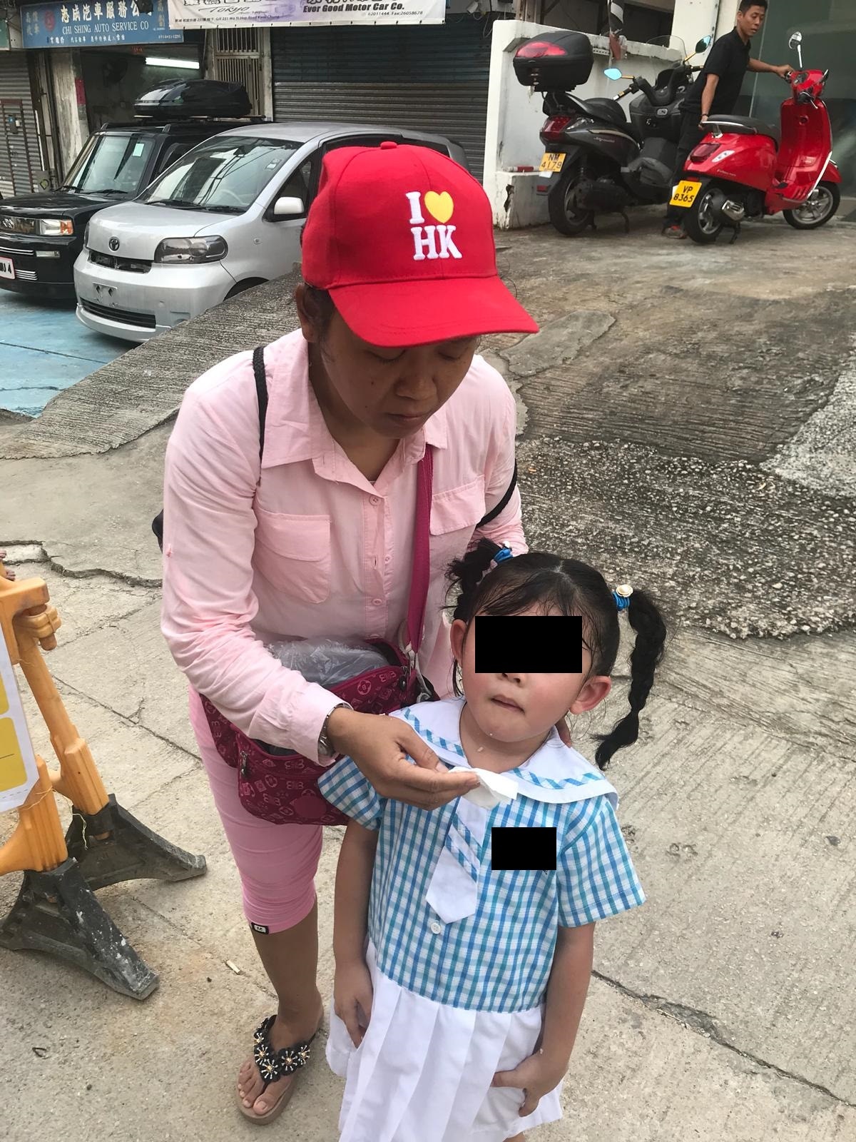 A domestic worker was criticized by a passer-by after being caught treating her young ward violently on a street in Kwai Chung in the New Territories on Thursday.