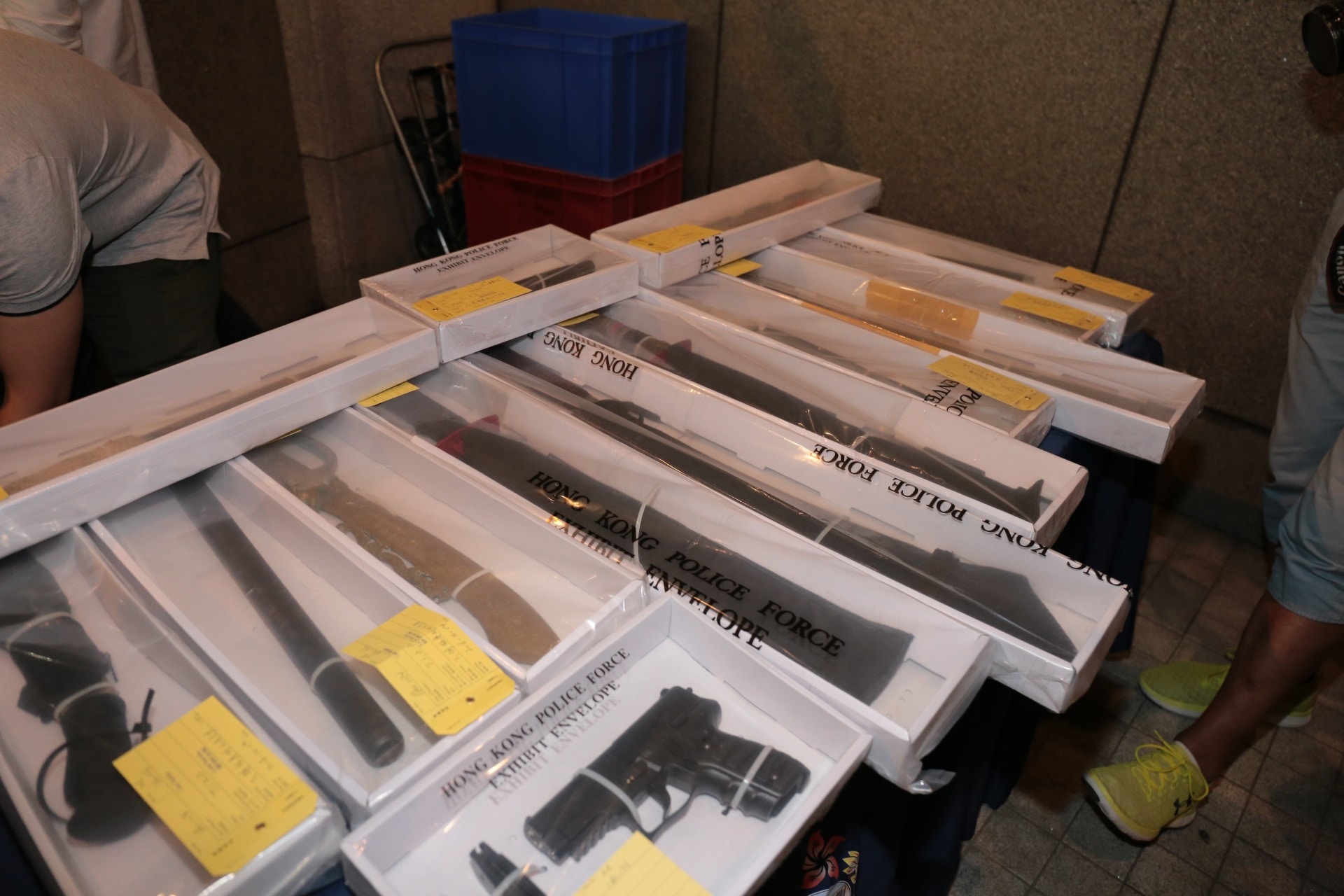 Police say they also found some imitation firearms and offensive weapons in the house, including airsoft guns and a few guandao, a type of Chinese pole weapon.