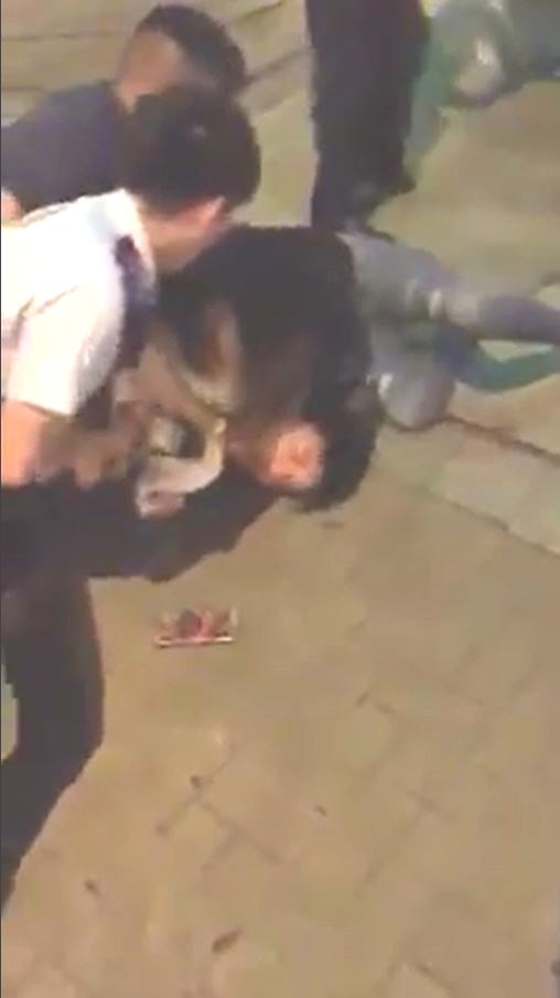 The video showed a man, who appeared upset, punching a store gate outside a bar on Wan Tsui Road in Chai Wan while police officers tried to get him to calm down, news website HK01.com reported.