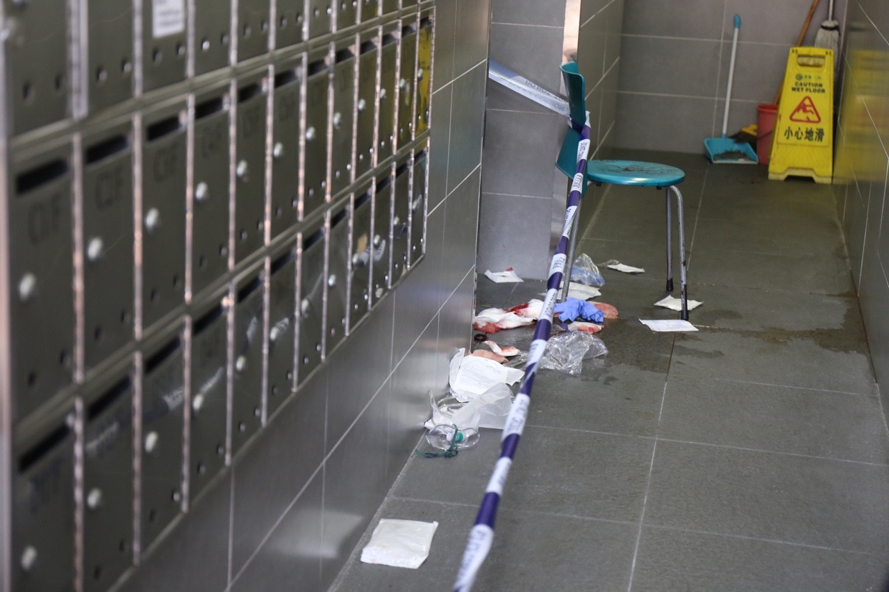They were sent to the Tuen Mun hospital for treatment. The injured man and woman were a couple and rented a subdivided flat in the building. After an initial investigation, it was suspected the woman had been having an affair with the wanted man, who went to the flat to visit the woman but found her naked in bed with another man, the Apple Daily reported.