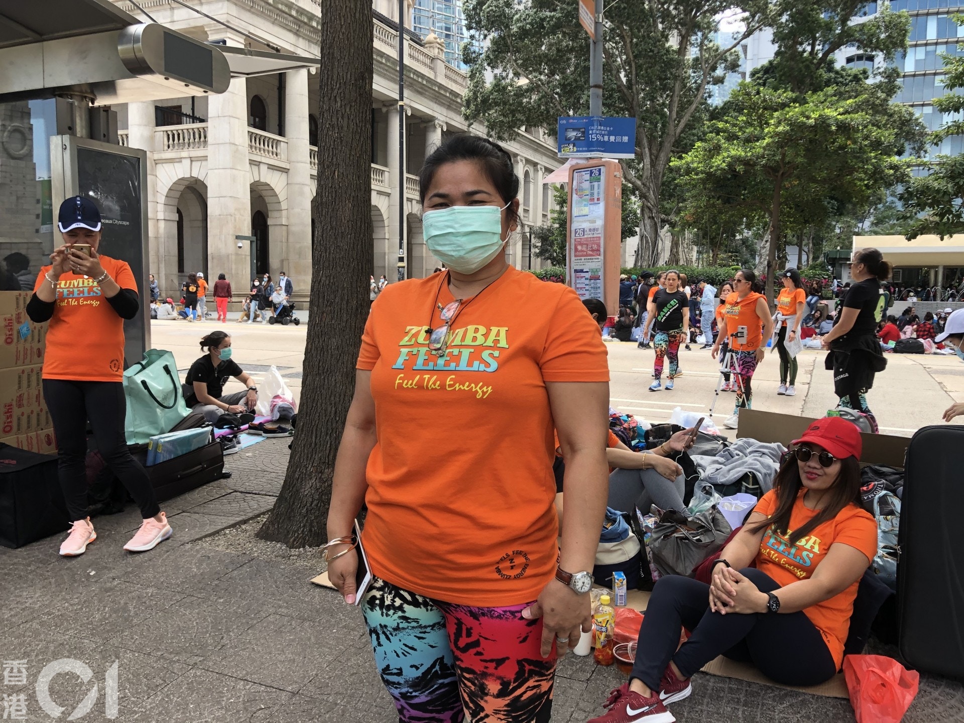 Edma, who had worked in Hong Kong for 16 years, told HK01.com that she trusted her friends because of their good personal hygiene practices. She said she would continue to dance with a mask in Central on Sundays. She said the Hong Kong government should give masks to Filipino domestic workers through the Consulate General of the Philippines as some employers failed to give them masks.